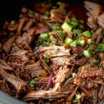 This Chipotle Barbacoa Beef features tender, marinated beef chuck roast slow-cooked with smoky chipotle peppers and spices, making it ideal for tacos or burritos. Garnish with fresh cilantro and lime for a burst of flavor.