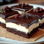 And there you have it! This chocolate cream slice recipe isn’t just another dessert; it’s a guaranteed crowd-pleaser, a comforting indulgence, and a surprisingly simple way to elevate any occasion. From the satisfying snap of the chocolate crust to the velvety smooth, intensely chocolatey cream filling, every bite is a symphony of textures and flavors that will leave you wanting more. I truly believe this recipe is a must-try for any chocolate lover, regardless of your baking experience. Why is it a must-try? Because it delivers that “wow” factor without requiring hours in the kitchen. The crust comes together quickly, the filling is a breeze to whip up, and the assembly is straightforward. Plus, the ingredients are readily available, meaning you can satisfy that chocolate craving whenever it strikes! It’s the perfect balance of elegance and ease, making it ideal for everything from casual weeknight desserts to more formal gatherings. Trust me, the rave reviews you’ll receive will make all the effort worthwhile. But the best part? This recipe is incredibly versatile! Feel free to experiment with different variations to suit your taste. For a richer, more decadent experience, try using dark chocolate with a higher cocoa percentage in both the crust and the filling. Or, if you prefer a lighter flavor, milk chocolate works beautifully too. You could even add a hint of espresso powder to the filling to enhance the chocolate notes and create a mocha-inspired treat. Serving suggestions are endless! A simple dusting of cocoa powder or a few chocolate shavings adds a touch of elegance. For a more festive presentation, top each slice with fresh berries like raspberries or strawberries. A dollop of whipped cream or a scoop of vanilla ice cream is always a welcome addition. And for the ultimate indulgence, drizzle a warm chocolate sauce over the top. Consider these variations to make it your own: * Peanut Butter Chocolate Dream: Swirl peanut butter into the chocolate cream filling before chilling. * Mint Chocolate Magic: Add a few drops of peppermint extract to the filling for a refreshing twist. * Salted Caramel Sensation: Drizzle salted caramel sauce over the finished slice for a sweet and salty delight. * Oreo Overload: Crush Oreo cookies and sprinkle them over the crust before baking or mix them into the filling. I’m so excited for you to try this recipe and experience the joy of creating your own stunning chocolate cream slice. It’s a recipe that I’ve perfected over time, and I’m confident that it will become a staple in your dessert repertoire. So, what are you waiting for? Gather your ingredients, preheat your oven, and get ready to embark on a chocolatey adventure! I’m absolutely certain you’ll love the results. And most importantly, I’d love to hear about your experience! Did you make any variations? What did your friends and family think? Share your photos and stories in the comments below. Let’s create a community of chocolate lovers who appreciate the simple pleasures of a perfectly crafted dessert. Happy baking! I can’t wait to see your creations! Print