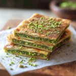 In conclusion, this Turkish Pistachio Pastry is an absolute must-try for anyone looking to indulge in a delightful treat that combines rich flavors and a satisfying crunch. The layers of flaky pastry, combined with the nutty goodness of pistachios and a hint of sweetness, create a dessert that is not only delicious but also visually stunning. Whether youre serving it at a special occasion or simply enjoying it with a cup of tea, this pastry is sure to impress. For serving suggestions, consider pairing your Turkish Pistachio Pastry with a dollop of whipped cream or a scoop of vanilla ice cream for an extra touch of decadence. You can also experiment with variations by adding different nuts like walnuts or almonds, or even incorporating a drizzle of honey or chocolate for a unique twist. I encourage you to give this recipe a try and experience the joy of creating something truly special in your kitchen. Dont forget to share your experience with friends and family, and let them know how much you enjoyed making this Turkish Pistachio Pastry. Id love to hear your thoughts and any creative variations you come up with! Happy baking! Print